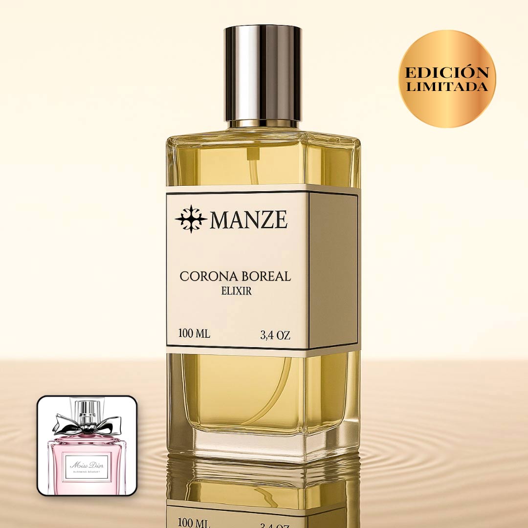 Corona Boreal está inspirado en Miss Dior Parfum de Dior. Una fragancia femenina que celebra la alegría y la delicadeza de las flores con un corazón radiante de rosa y peonía, realzado por notas ambaradas y almizcladas que envuelven con un aura sofisticada y luminosa.